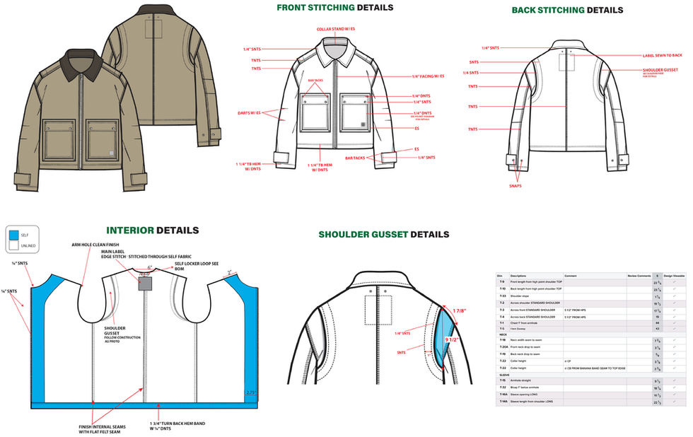 These sketches are an example of how I build tech packs and give a glimpse of what I can create to communicate with factories throughout the entire the sample making process for collections that I have a hand in developing. More comprehensive examples can be provided upon request.